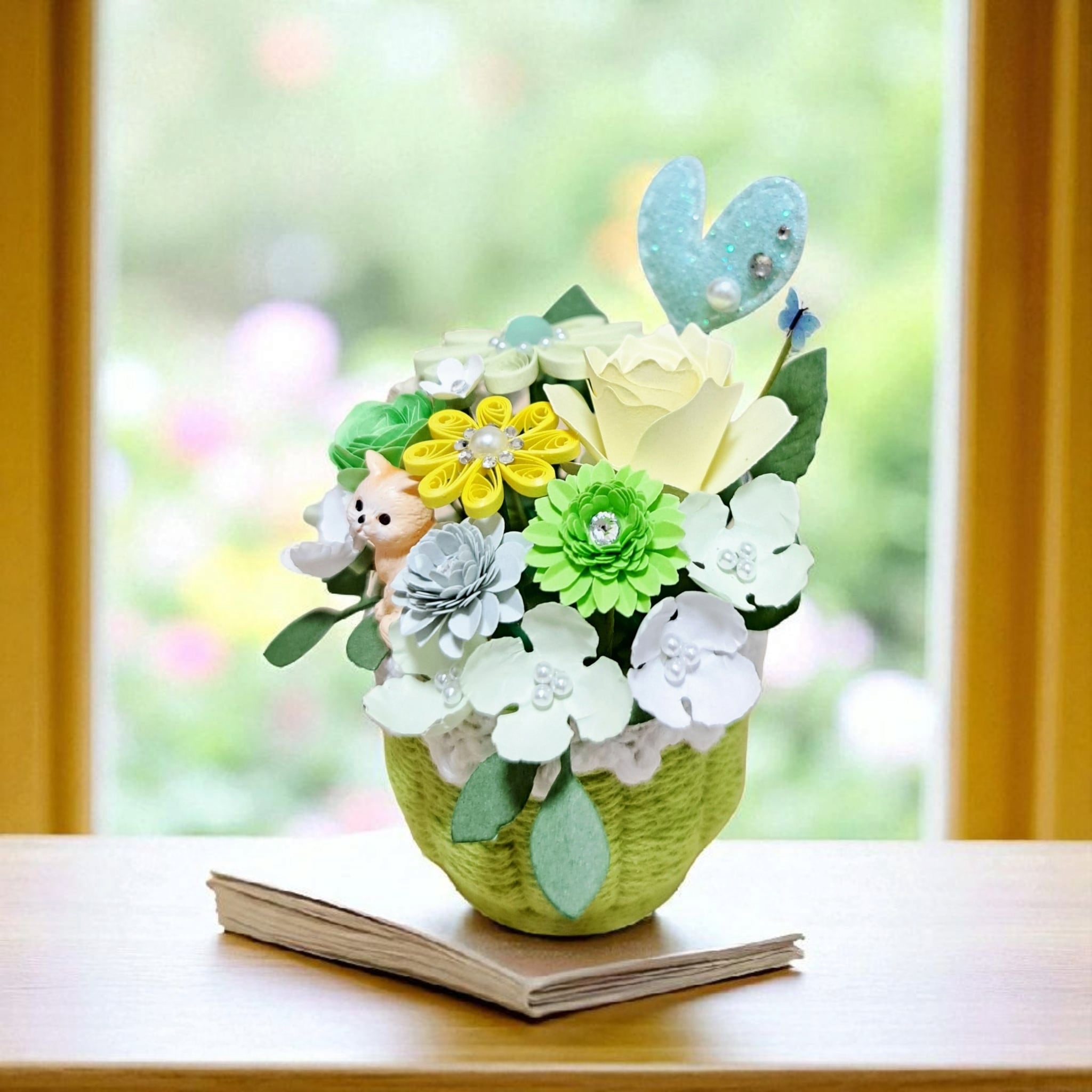 このペーパーフラワーは、ちっちゃい猫と美しい緑色のお花が絶妙に組み合わさったアイテムで、見るだけで心がほっこりする魅力を持っています♡