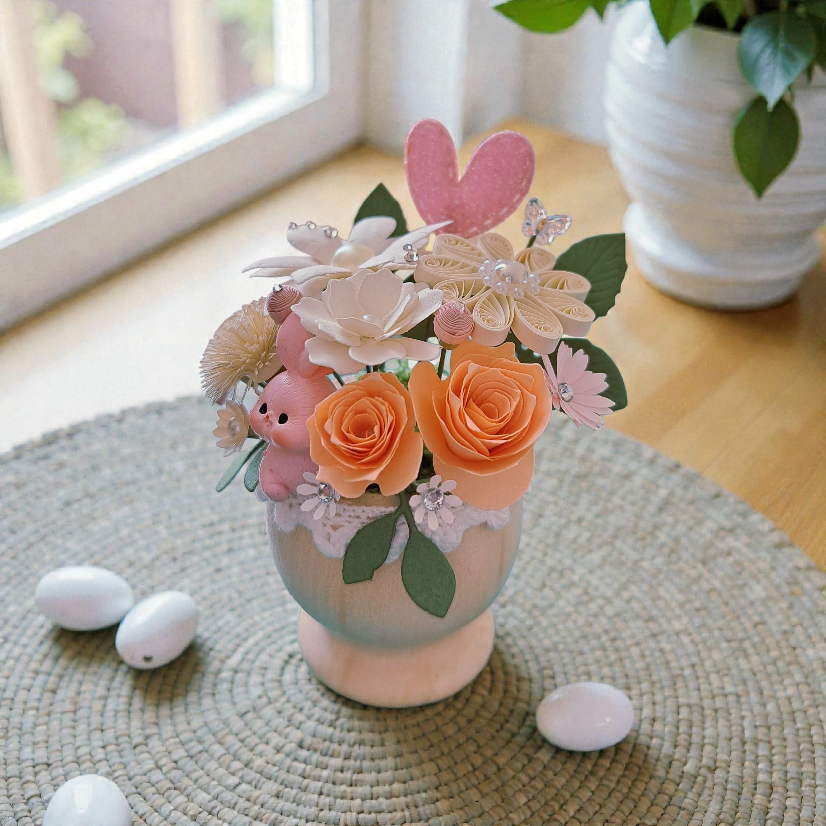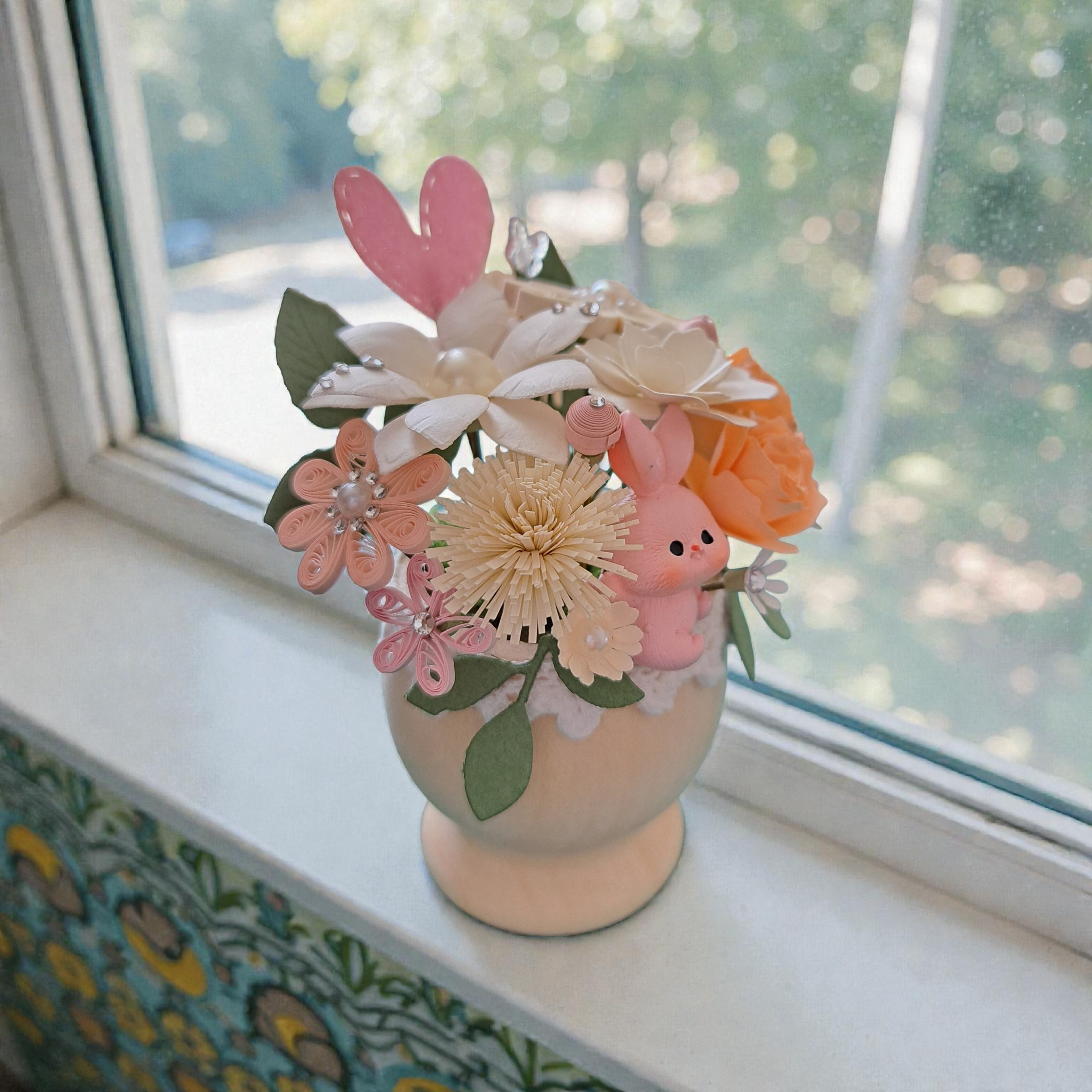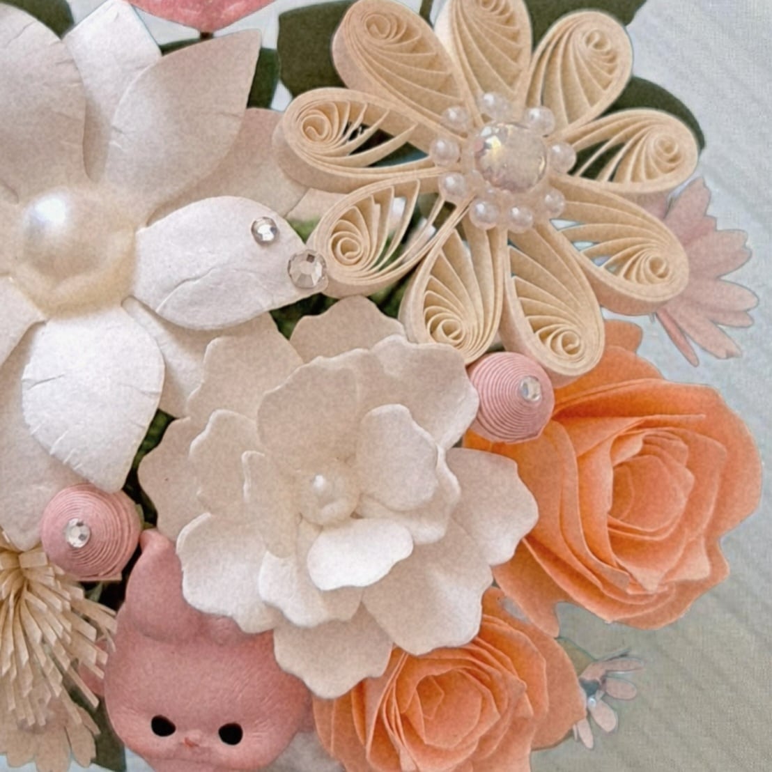 ぷっくりうさぎのかわいいペーパーフラワー ペーパークイリング キラキラフラワーアレンジ